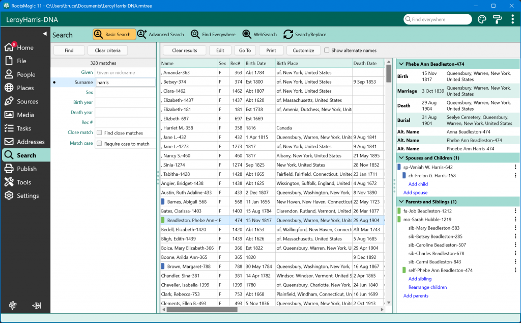 That means you can review details, see family connections, and even make edits directly from the search screen — without opening and closing individual people just to confirm you’ve found the right one.