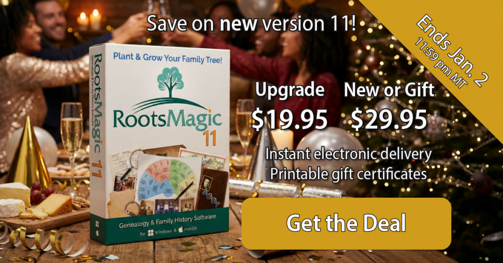 Due to popular demand, we’re extending our Holiday Special Sale on RootsMagic through midnight January 2. That gives you a little extra time to treat yourself to the tools you need to discover, organize, and share your family history.